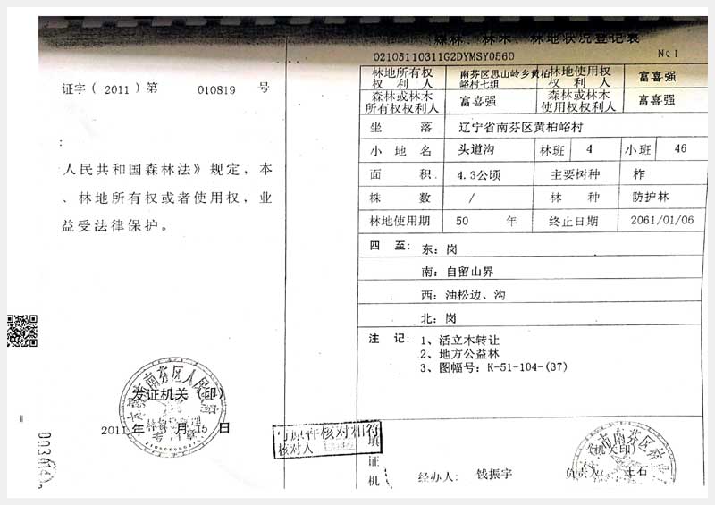 名稱:南芬區(qū)黃柏村頭道溝林權(quán) 面積:32.1公頃 瀏覽次數(shù):1897