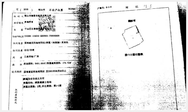 208號 鞍山市千山區(qū)甘泉鎮(zhèn)英城子村房產(chǎn)、土地使用權(quán)及機器設(shè)備