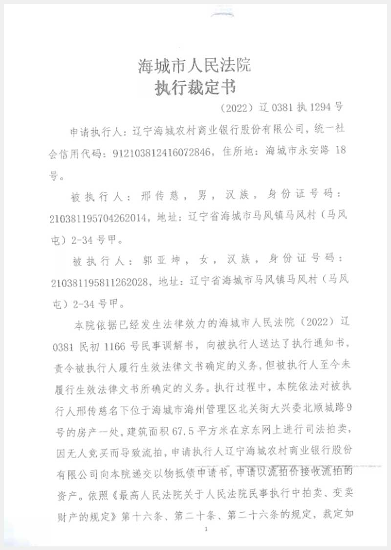 地址:海城市海洲管理區(qū)北關(guān)街大興委 標(biāo)的號(hào):239