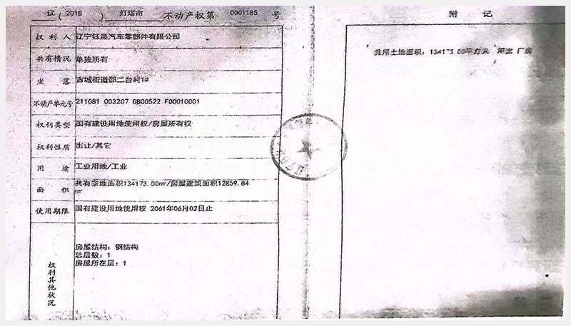 名稱:燈塔市鐵西工業(yè)園區(qū)古城街道邵二臺(tái)村房產(chǎn)及土地使用權(quán) 面積:房產(chǎn):19,551.64㎡;土地:134,173㎡ 瀏覽次數(shù):327