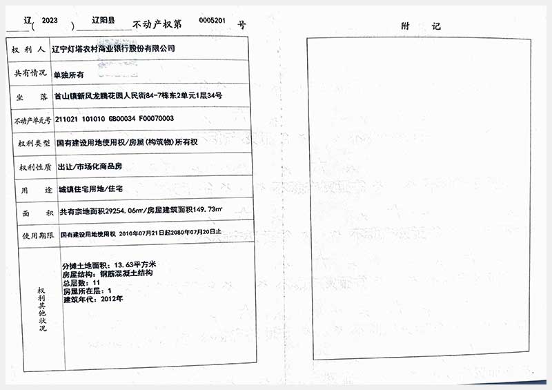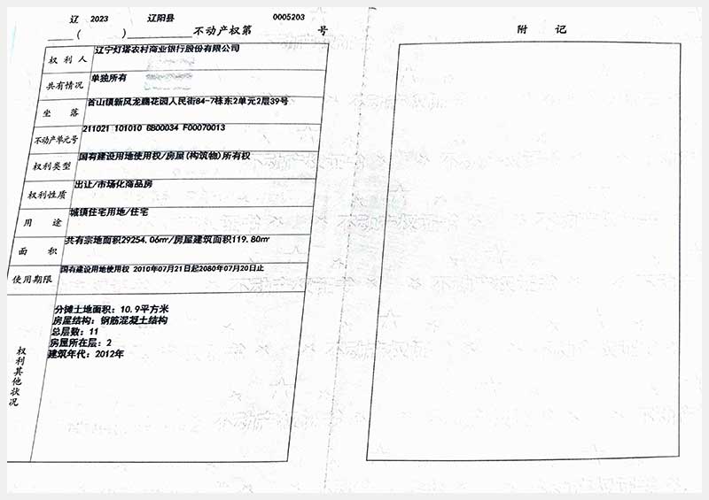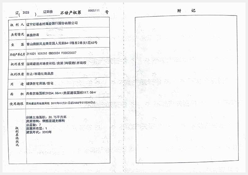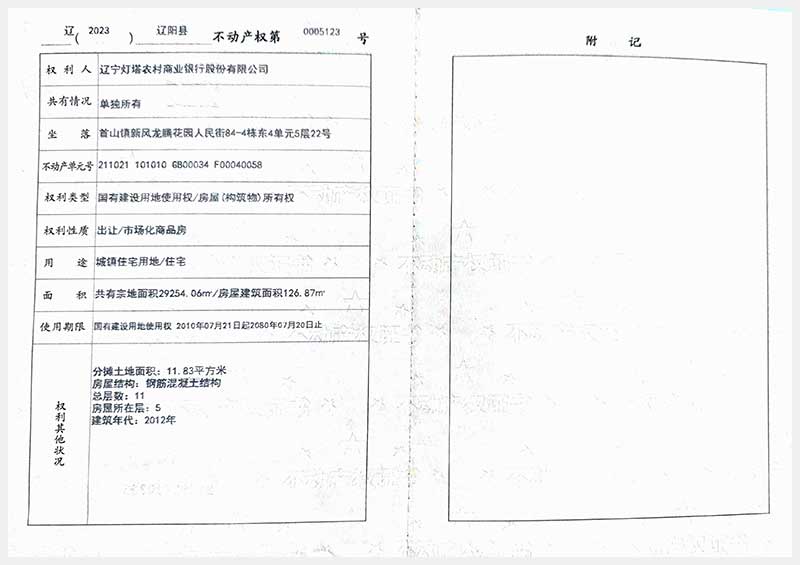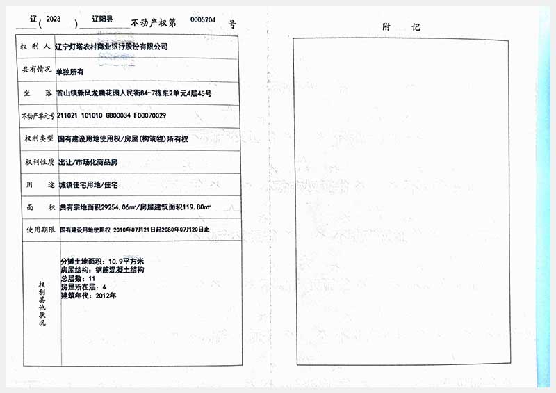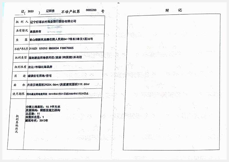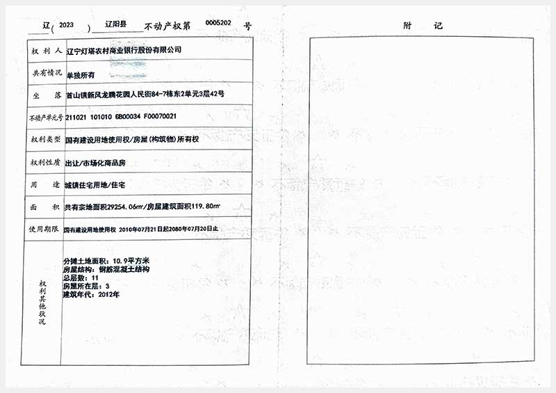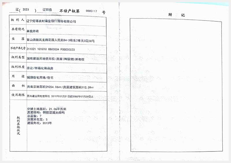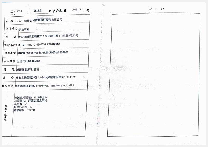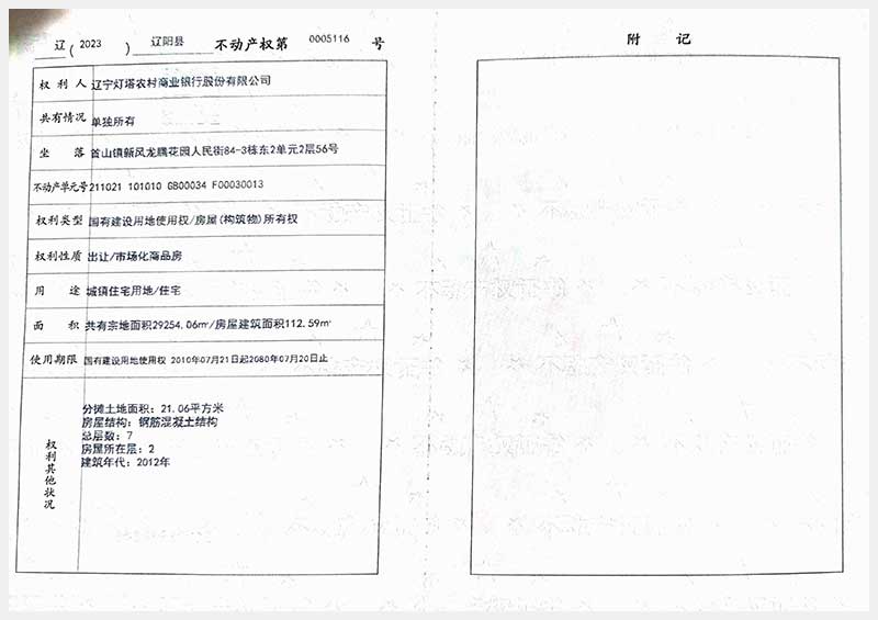 58號 遼陽市首山鎮(zhèn)新風龍騰花園人民街84棟房產(chǎn)