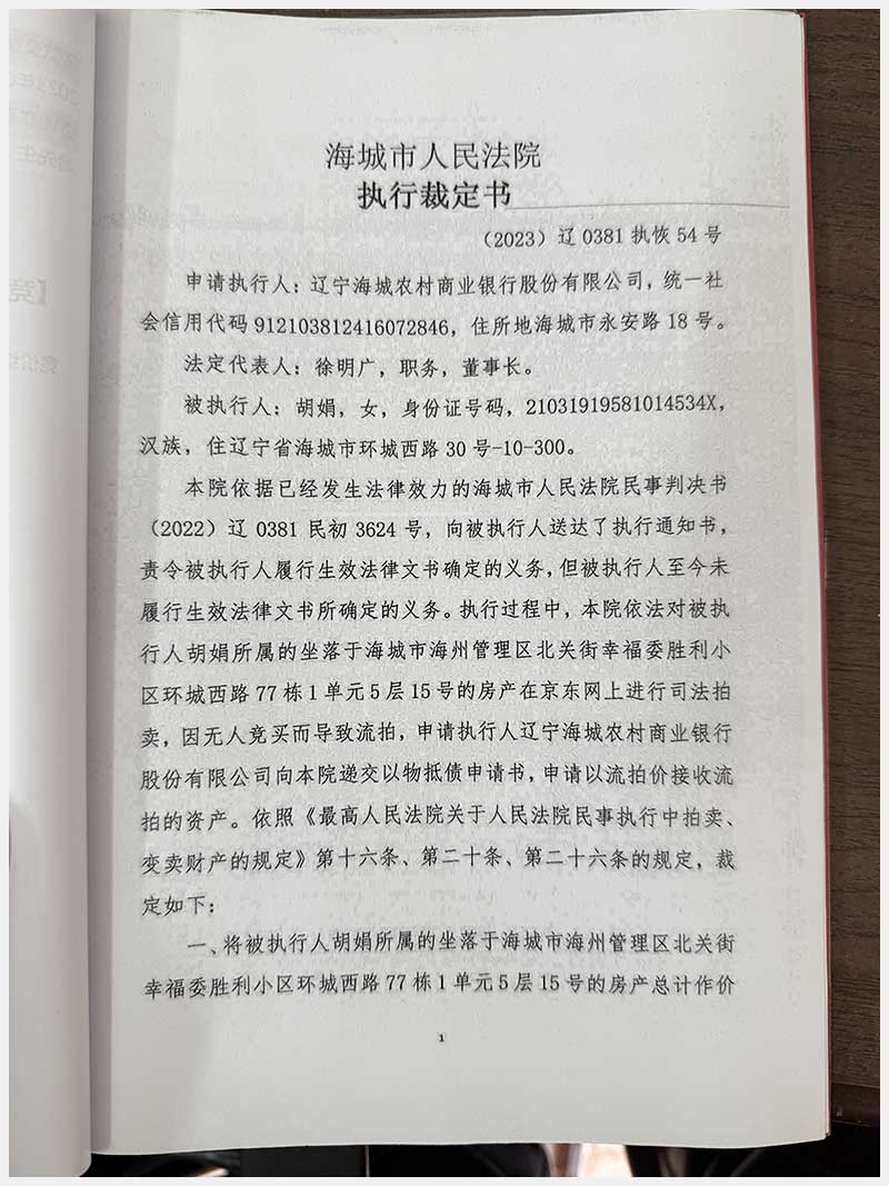 269號 海城市海州管理區(qū)北關(guān)街幸福委勝利小區(qū)環(huán)城西路77棟1單元5層15號房產(chǎn)