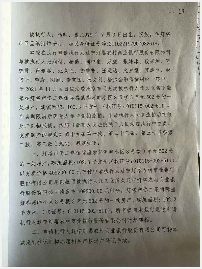 79號(hào) 燈塔市佟二堡鎮(zhèn)際盛紫郡河畔小區(qū)8號(hào)樓3單元502號(hào)房產(chǎn)