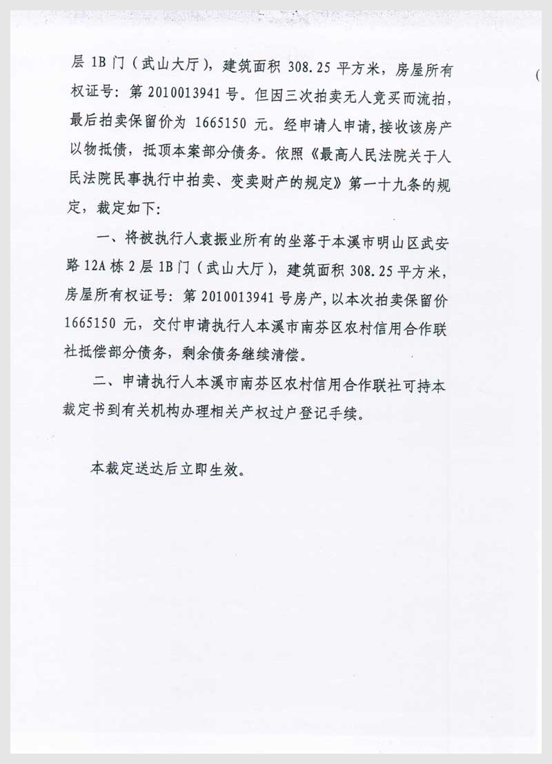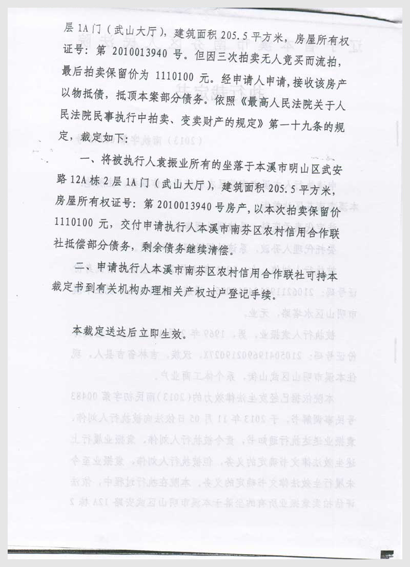 名稱:本溪市明山區(qū)武安路12A棟2層1A門(mén)、1B門(mén)房產(chǎn)2處 面積:205.5㎡/308.25㎡ 瀏覽次數(shù):2459