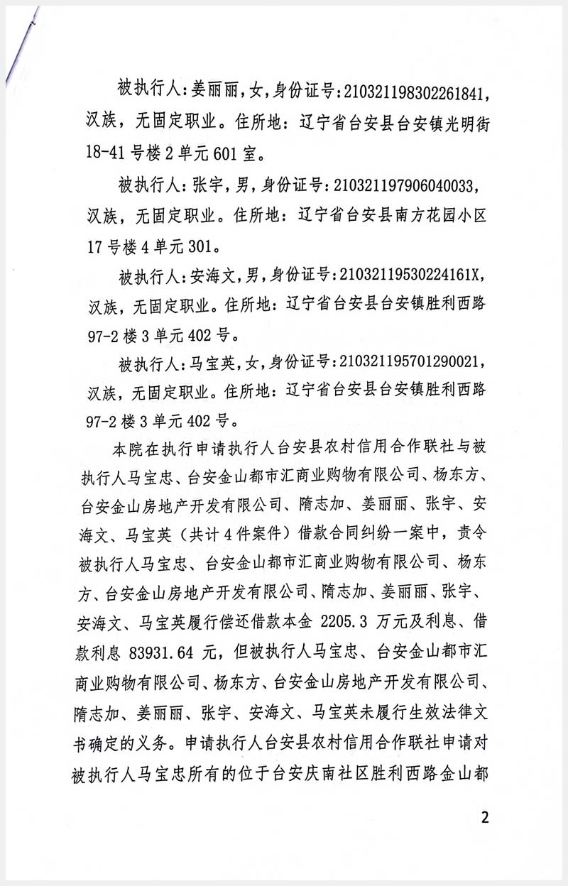 地址:臺安慶南社區(qū)勝利西路金山都市匯 標的號:86-4