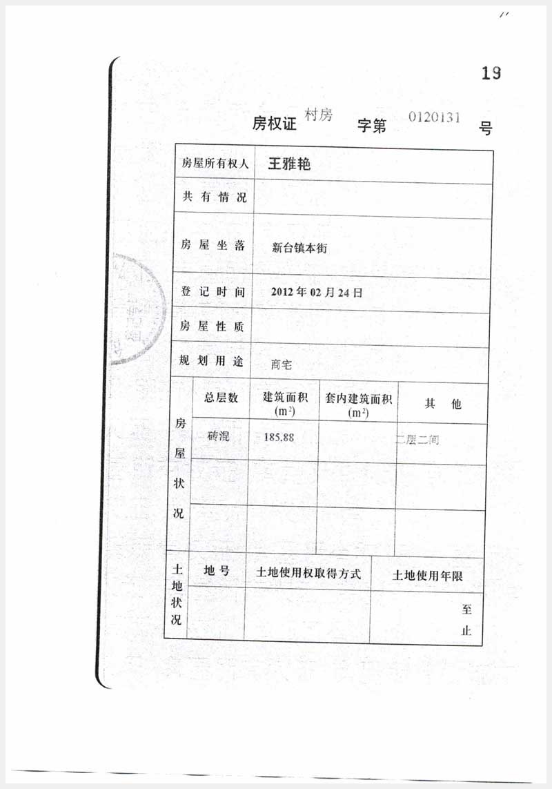 名稱:臺(tái)安縣新臺(tái)鎮(zhèn)本街2處房產(chǎn) 面積:185.88㎡、186.96㎡ 瀏覽次數(shù):1199