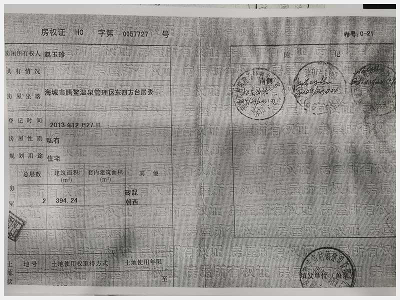 名稱:海城市騰鰲溫泉管理區(qū)東四方臺居委會房產(chǎn) 面積:394.24㎡ 瀏覽次數(shù):1314
