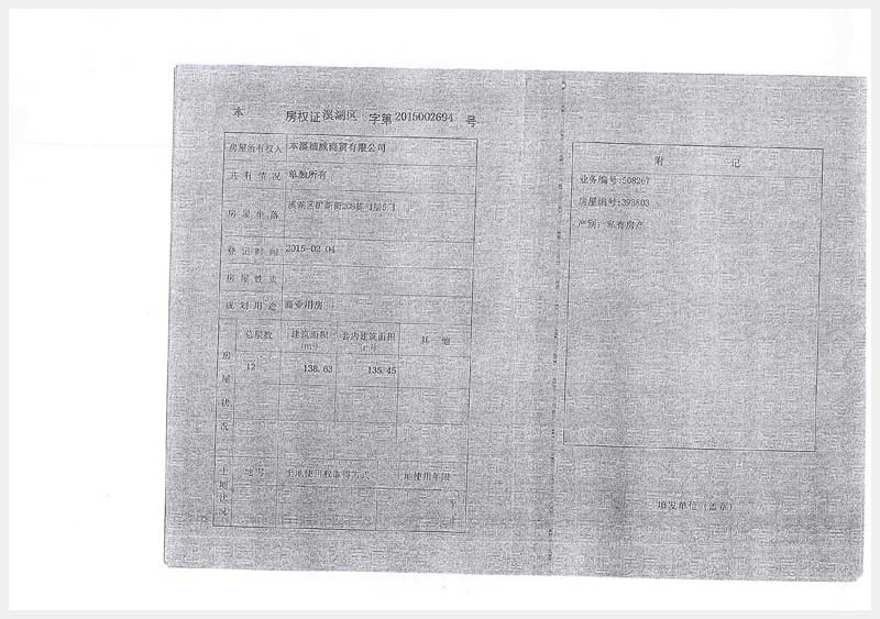 名稱:本溪市溪湖區(qū)礦新街208棟-1層1門至6門房產(chǎn) 面積:1門:89.82㎡;2門:120.2㎡;3門:212.98㎡;4門:141.51㎡;5門:138.63㎡;6門:141.07㎡ 瀏覽次數(shù):994