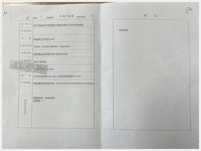 名稱:海城市王石鎮(zhèn)大坎村房產(chǎn) 面積:140㎡(有證面積76.8㎡) 瀏覽次數(shù):812
