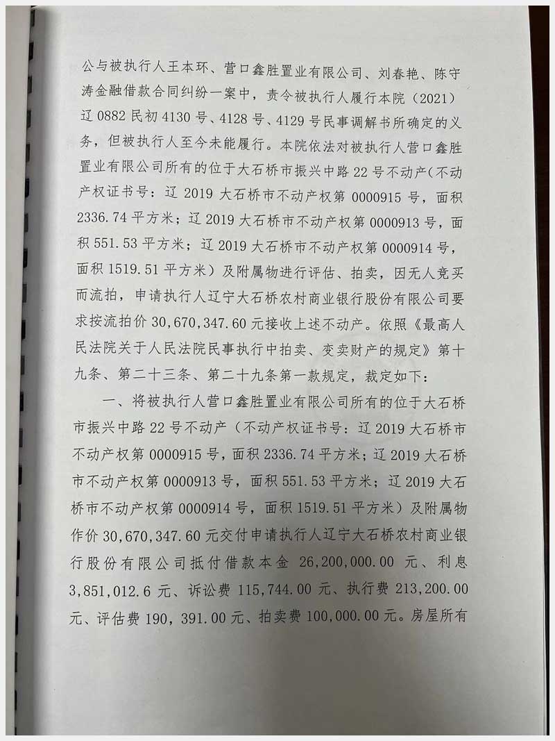 地址:大石橋市振興中路22號(hào)(鑫盛綜合樓) 標(biāo)的號(hào):10