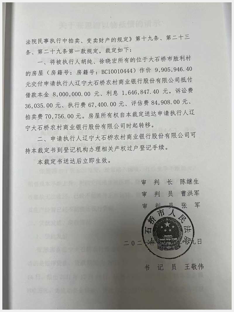 地址:大石橋市勝利村 標(biāo)的號(hào):12