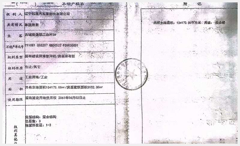 名稱:燈塔市鐵西工業(yè)園區(qū)古城街道邵二臺(tái)村房產(chǎn)及土地使用權(quán) 面積:房產(chǎn):19,551.64㎡;土地:134,173㎡ 瀏覽次數(shù):327