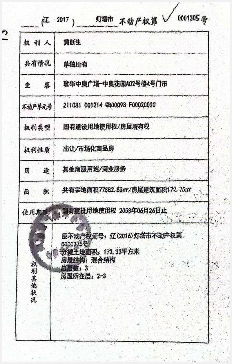 名稱:燈塔市歌華中奧廣場A02號樓4號、5號房產(chǎn) 面積:4號:270.83㎡;5號:269.51㎡ 瀏覽次數(shù):318