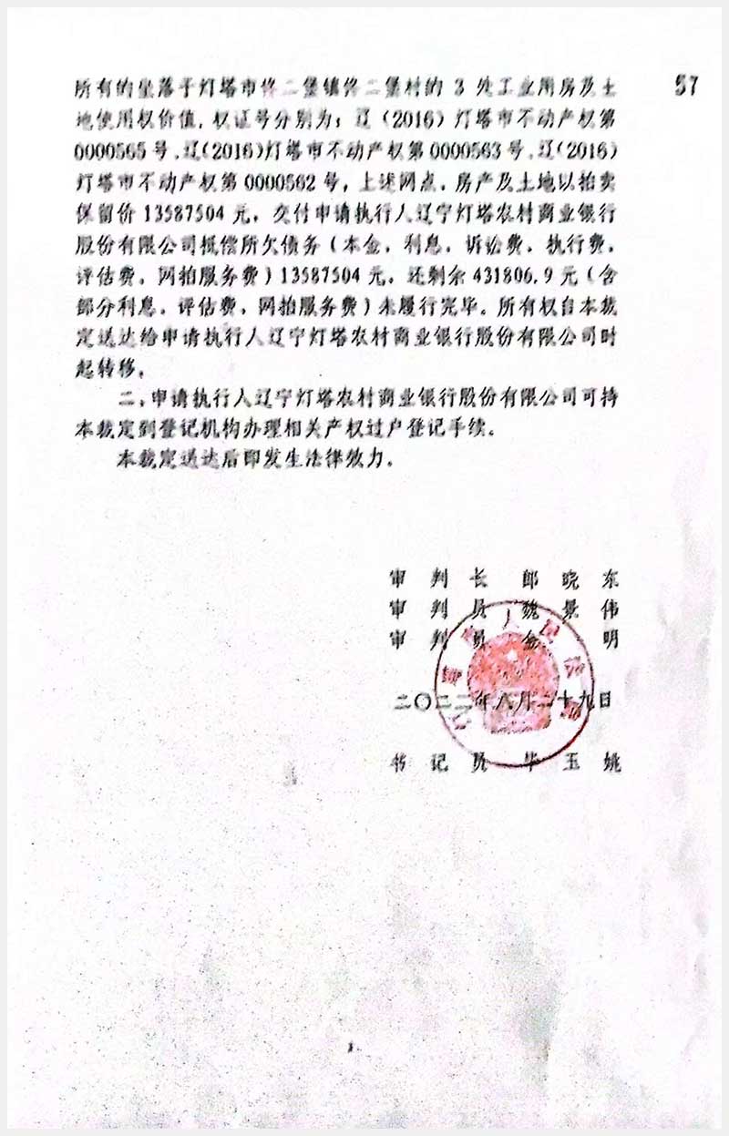 名稱:燈塔市佟二堡鎮(zhèn)佟二堡村房產(chǎn)及土地使用權(quán) 面積:房產(chǎn):1954.46㎡;土地:1727.01㎡ 瀏覽次數(shù):24