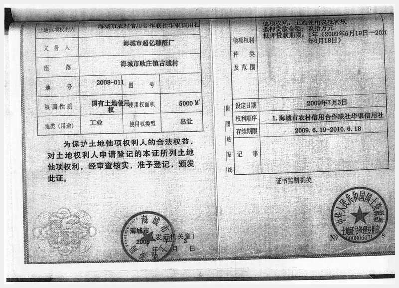 名稱:海城市耿莊鎮(zhèn)古城村的國有土地使用權(quán)及廠房 面積:土地:5000㎡、廠房:1860.69㎡ 瀏覽次數(shù):2441