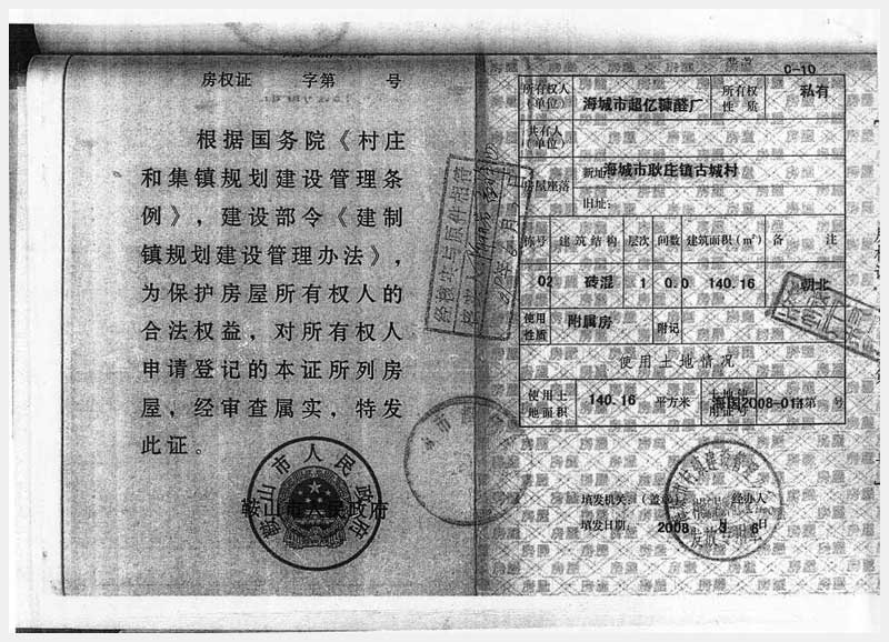 106號 海城市耿莊鎮(zhèn)古城村的國有土地使用權(quán)及廠房