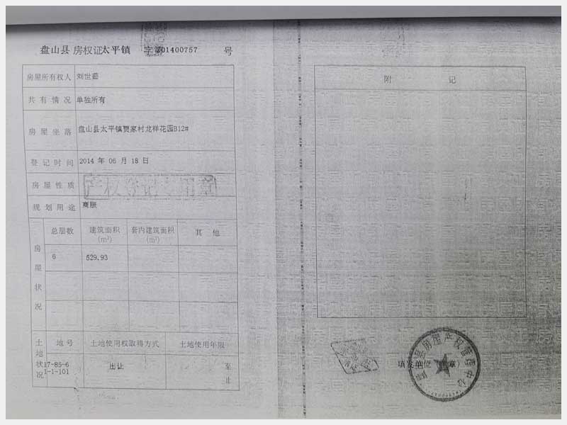 3號 盤錦盤山縣太平鎮(zhèn)賈家村龍祥花園B12#房產(chǎn)(劉世茹)