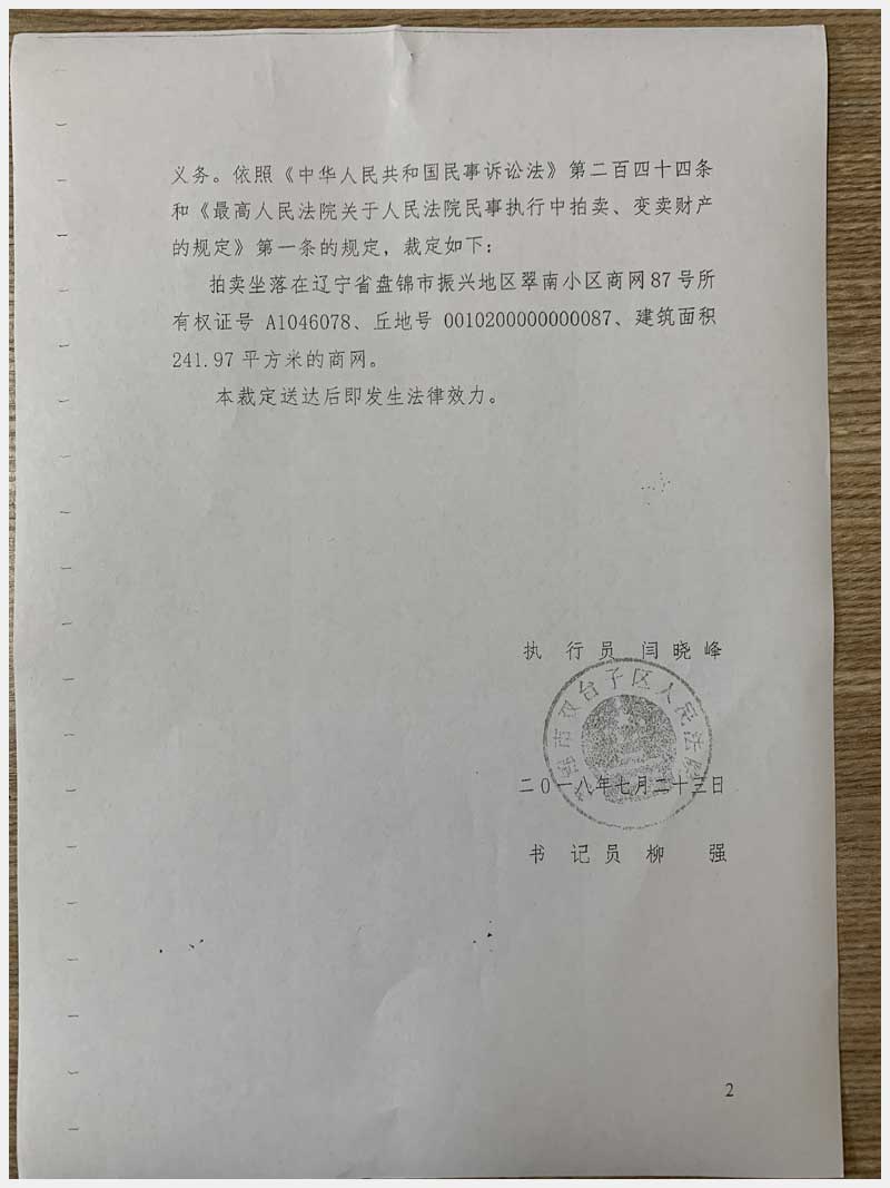 地址:盤錦興隆臺區(qū)振興地區(qū)翠南小區(qū) 標的號:28