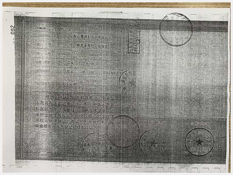地址:鞍山市岫巖雅河工業(yè)園區(qū) 標的號:53