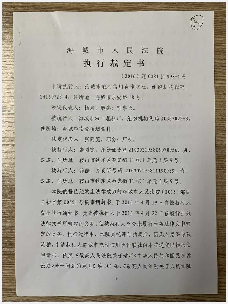 54號 海城市南臺鎮(zhèn)煙臺村房產(chǎn)及國有土地使用權(quán)
